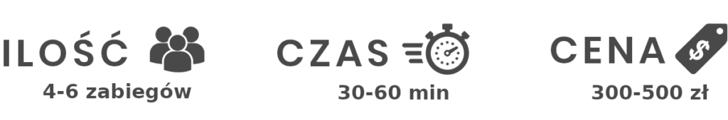 *Podane czasy przy zabiegach są czasem orientacyjnym rezerwacji, nie jest to dokładny czas trwania zabiegu.